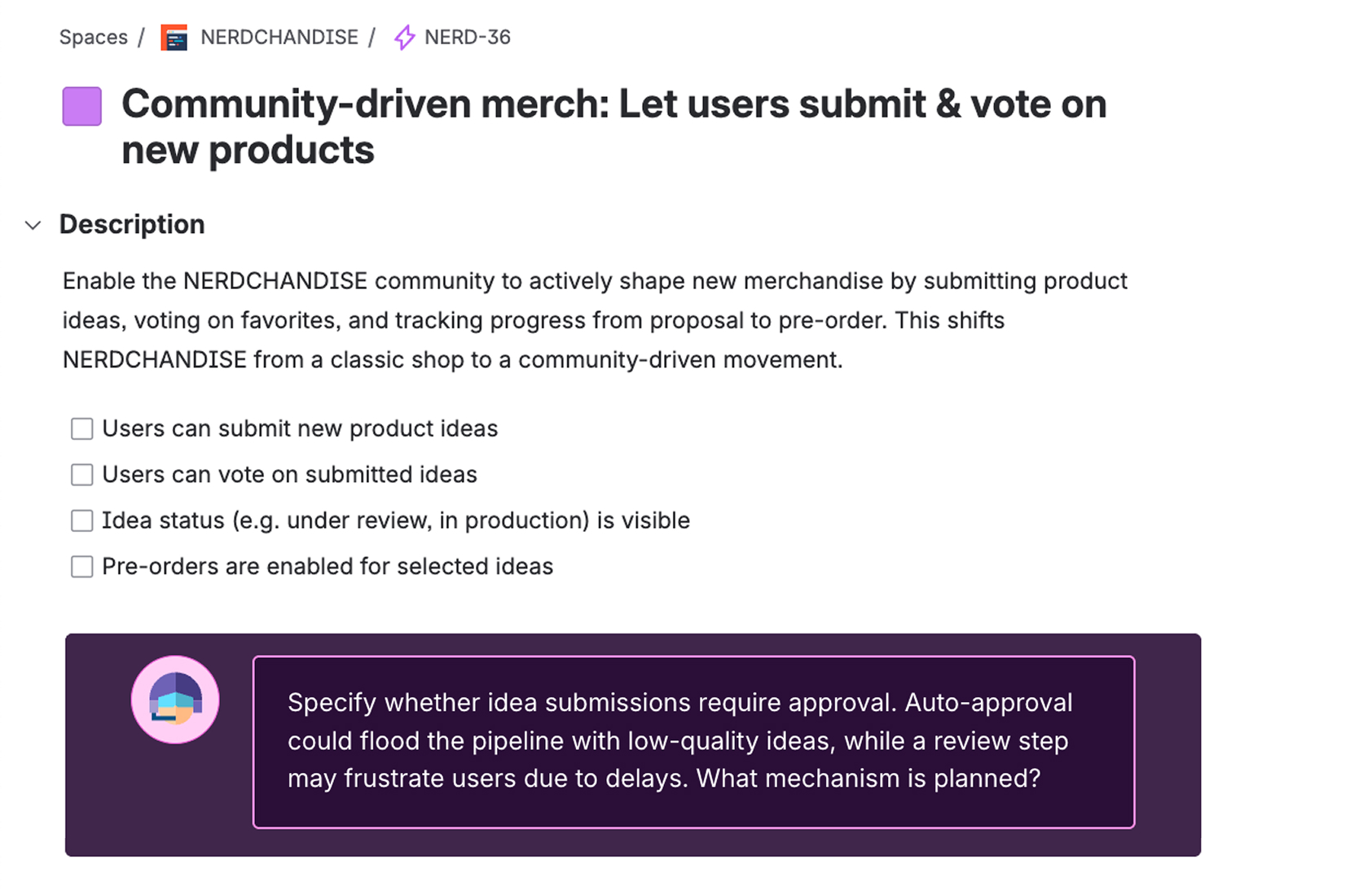And even better: When you open a ticket Product Copilot gives you feedback and points out what's missing.