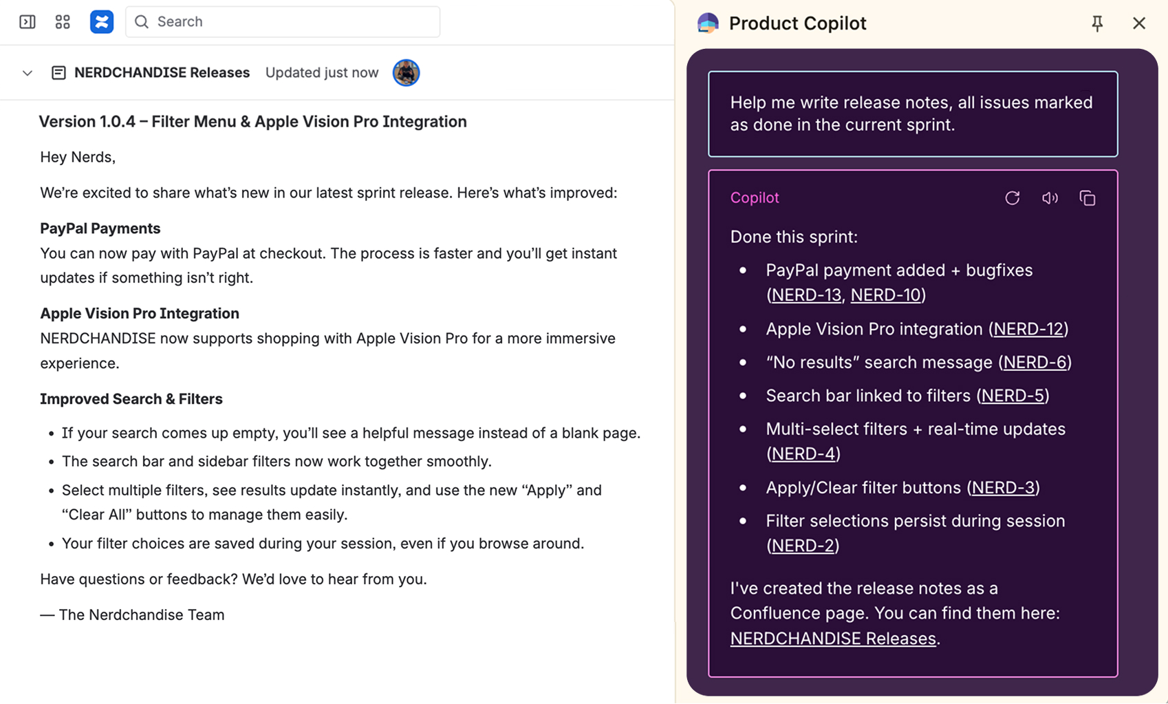 Product Copilot is now available. You can chat, create, and work on issues directly in Jira and Confluence.